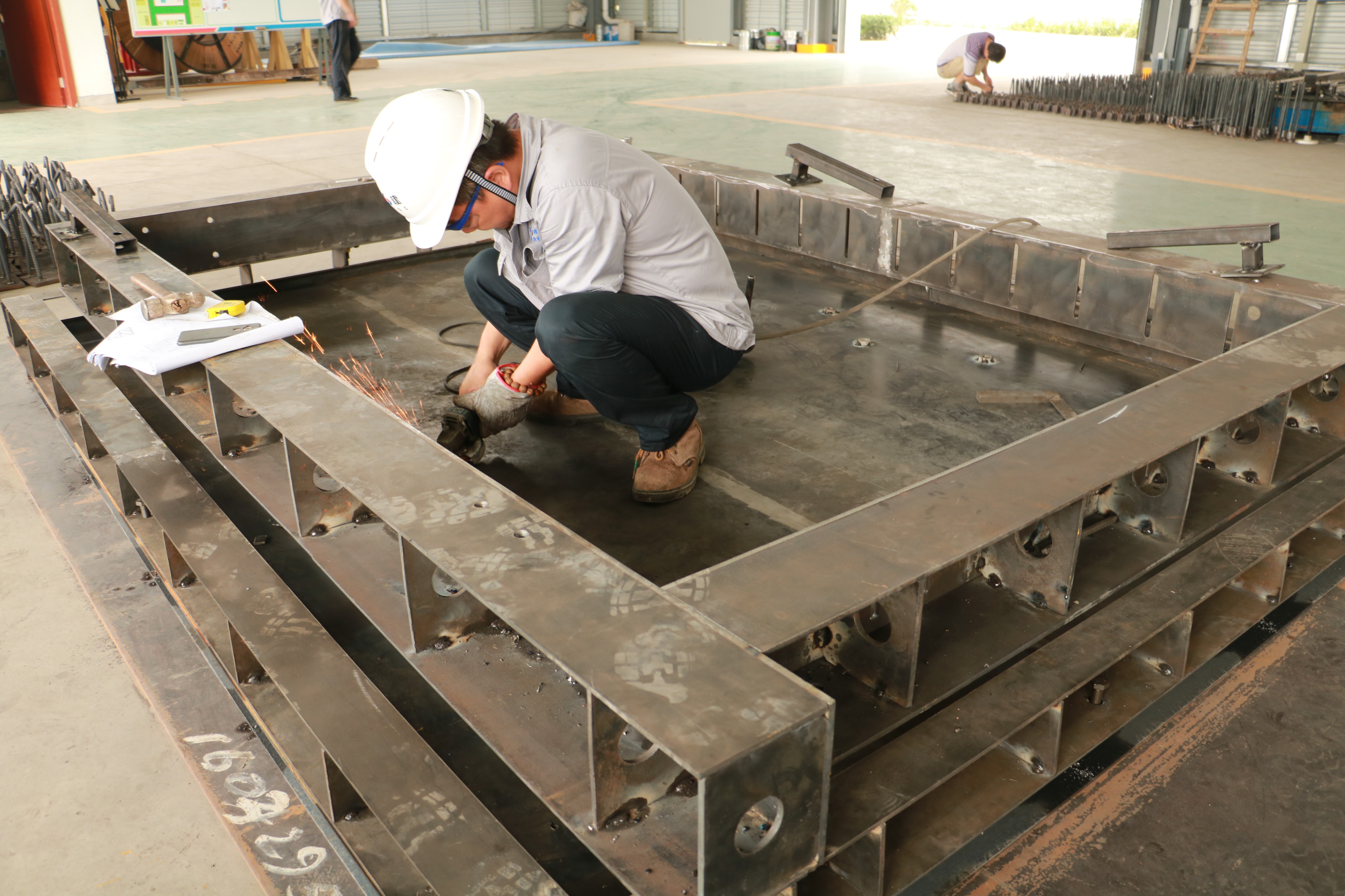 傳統(tǒng)現(xiàn)澆模式現(xiàn)場需要鋪設(shè)大量模具,由于模具質(zhì)量參差不齊,操作水平有高有低,拆模之后誤差很大,需要修復(fù)抹面的情況數(shù)不勝數(shù)。裝配式建筑的模具與成品的關(guān)系是“映射關(guān)系”,一套模具在正常情況下要周轉(zhuǎn)幾十甚至上百次,模具質(zhì)量很大程度上決定著構(gòu)件的質(zhì)量,模具就是整棟建筑的“基石”。模具的設(shè)計(jì)內(nèi)容極其復(fù)雜,選材、拼裝、焊法、人員操作水平、設(shè)備作業(yè)精度等都是影響模具質(zhì)量的關(guān)鍵!岸嗣嫦础睓C(jī)床在清洗模具的兩個(gè)端面時(shí),由于缺少固定裝置,模具頻繁發(fā)生位移,端面的直角難以保證,導(dǎo)致模具拼接時(shí)無法密封,容易造成構(gòu)件漏漿。這個(gè)問題一直困擾著模具車間的技術(shù)人員。有人提出:“我們自身就是專業(yè)研究工藝的,那我們自己能不能直接改造設(shè)備呢?我們就要和這點(diǎn)誤差死磕到底!”經(jīng)過反復(fù)討論和試驗(yàn),模具車間技術(shù)團(tuán)隊(duì)在原機(jī)床上加了卡緊和定位裝置,既滿足現(xiàn)有模具加工尺寸,又保證了加工精度。正是靠著這種錙銖必較的認(rèn)真勁兒,他們的工作不斷向前進(jìn)。
