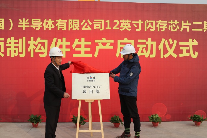 12月28日,在即將踏入充滿希望的2018年之際,陜建新型建材公司在三星(中國)半導(dǎo)體有限公司12英寸閃存芯片二期項目生產(chǎn)基地舉行預(yù)制構(gòu)件生產(chǎn)啟動儀式。陜建投資集團(tuán)副總經(jīng)理、陜建新型建材公司董事長劉新龍致辭并表示祝賀;公司副總經(jīng)理王永貴主持、副總經(jīng)理王輝為三星物產(chǎn)PC工廠項目部揭牌,公司中層以上管理人員及現(xiàn)場生產(chǎn)工人60余人共同見證這個難忘的時刻。