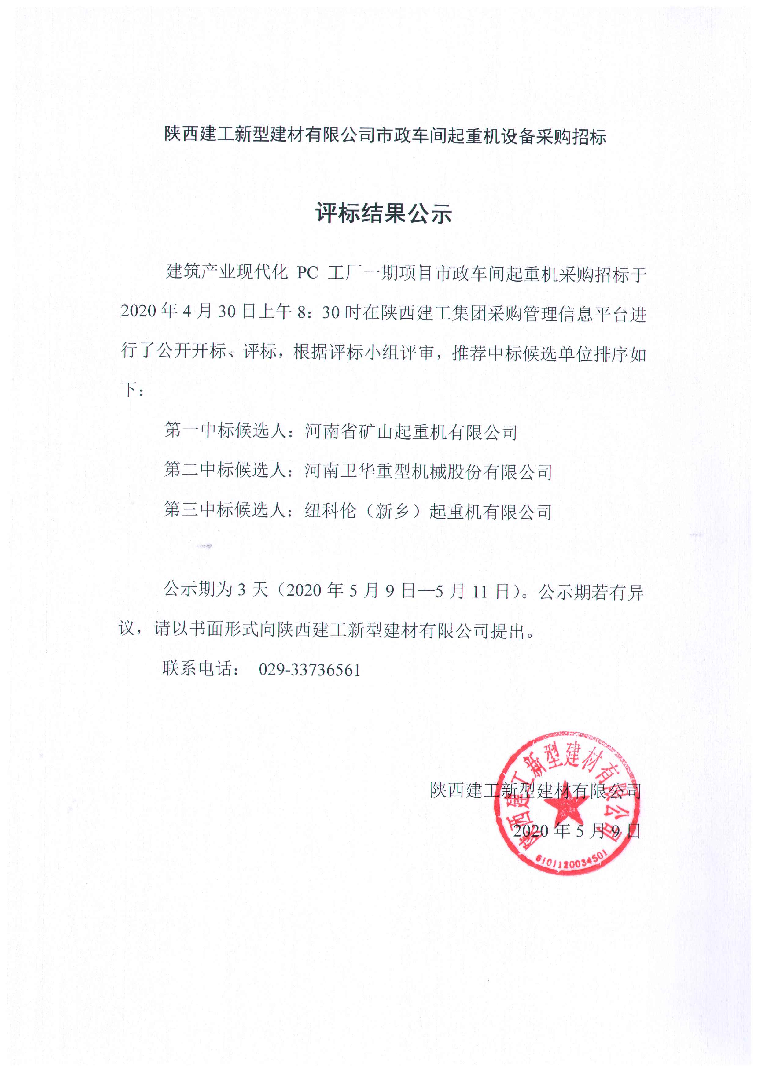 | 市政車間起重機設備采購招標評標結(jié)果公示 |