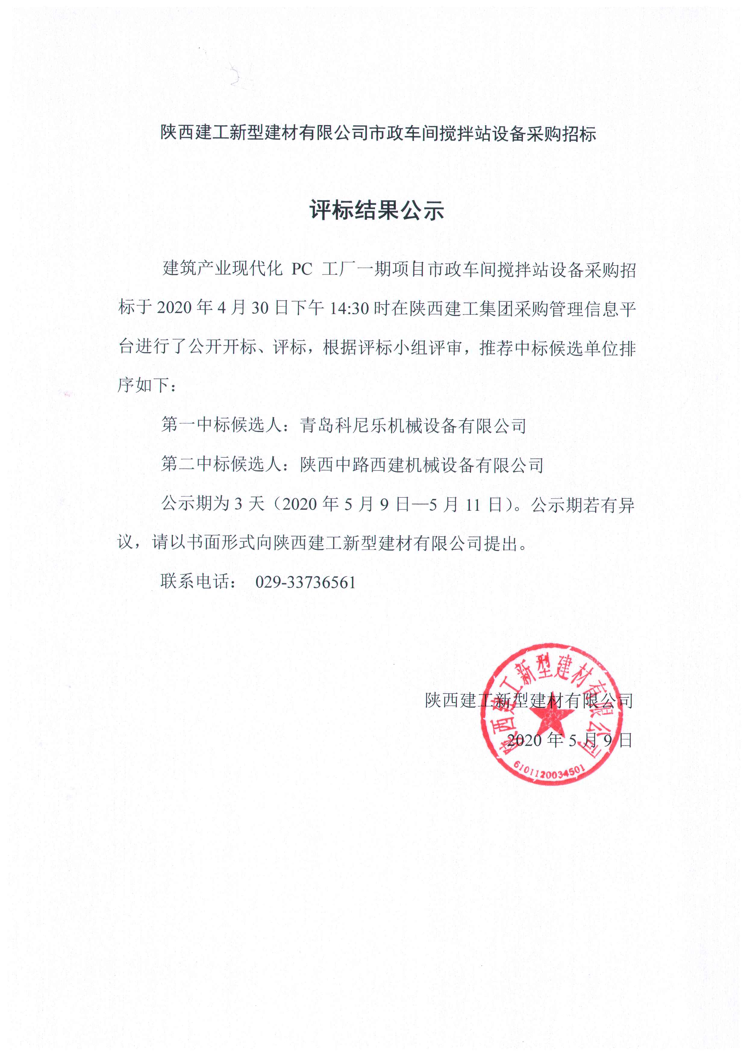 | 市政車間攪拌站設(shè)備采購招標(biāo)評標(biāo)結(jié)果公示 |