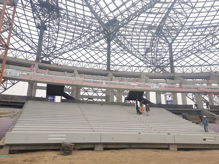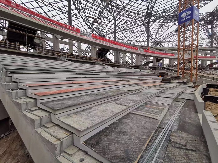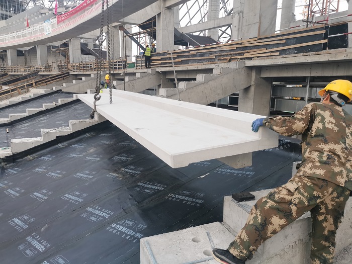 | 陜建新型建材承接的蘭州奧體中心預制看臺工程成功開啟安裝 |