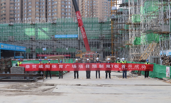 | 陜建新型建材承接的咸陽體育廣場(chǎng)項(xiàng)目預(yù)制雙T板首吊成功 |