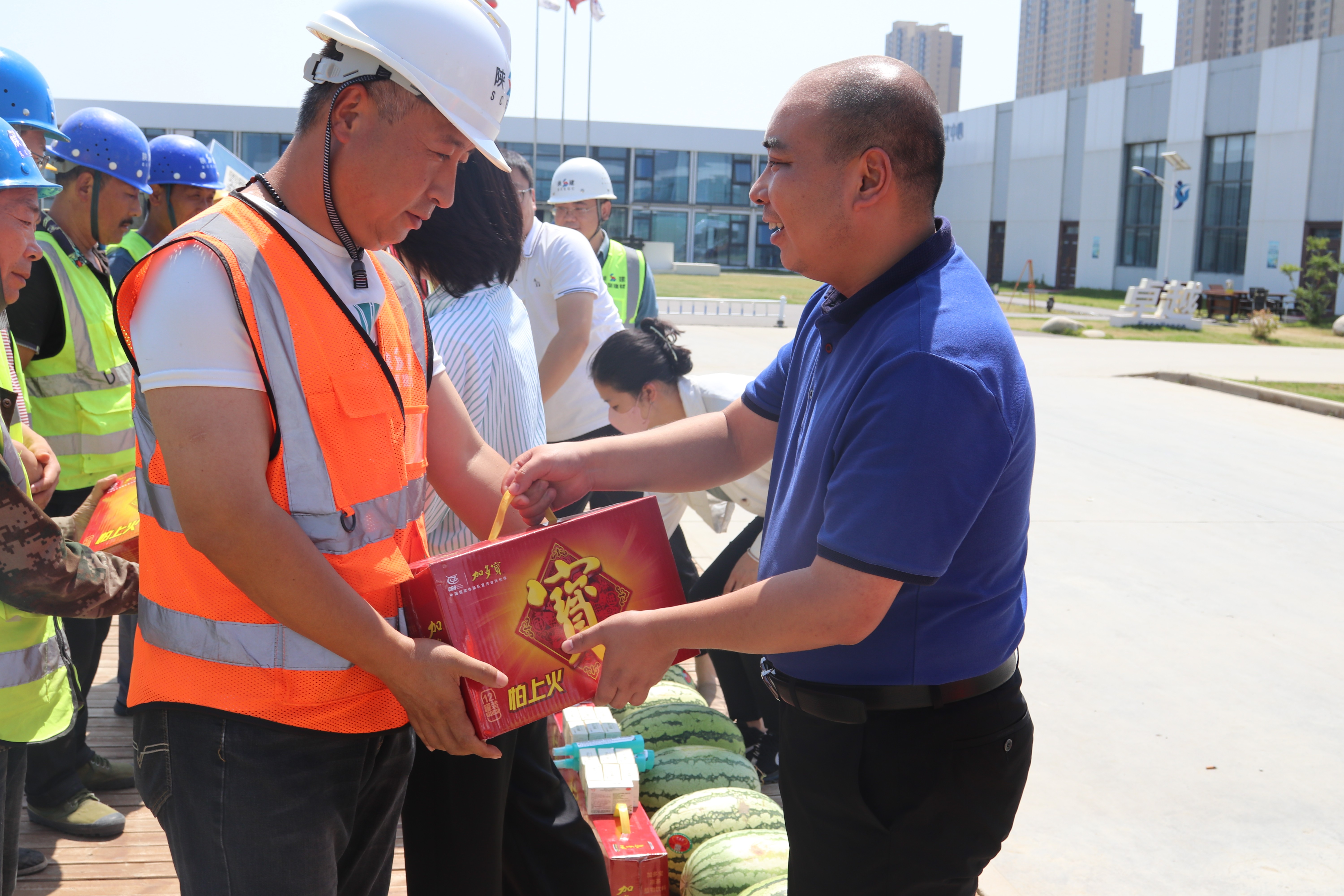 為切實維護(hù)一線作業(yè)人員的身體健康,確保高溫期間項目施工生產(chǎn)工作順利開展,7月8日,公司黨支部副書記任曉麗、副總經(jīng)理張斌帶隊到西安國際足球中心項目開展“夏日送清涼”慰問活動。